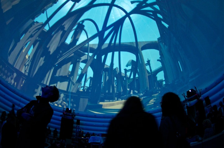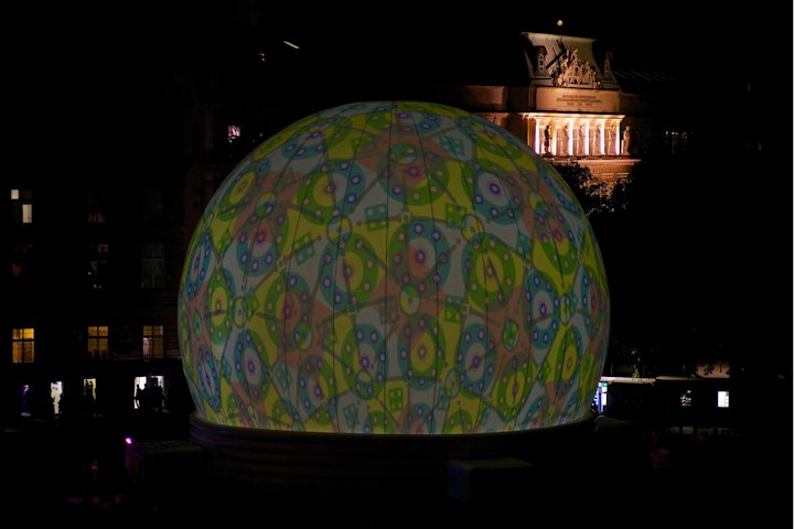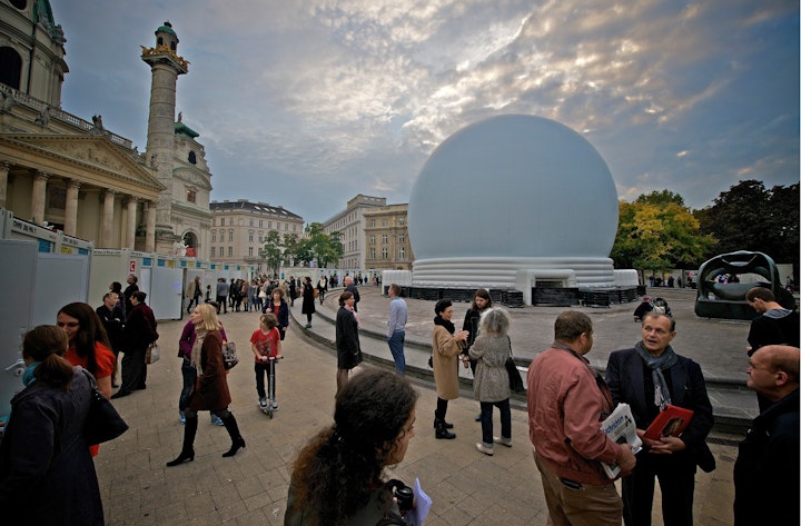 The i-sphere was designed as a fully portable, 360 degree VR cinema that could be enjoyed by audiences both within it, and from a distance. The temporary fully transportable structure toured the world back and forth from Vienna to Dubai to Sydney hosting an array of pop-ups and art exhibitions.